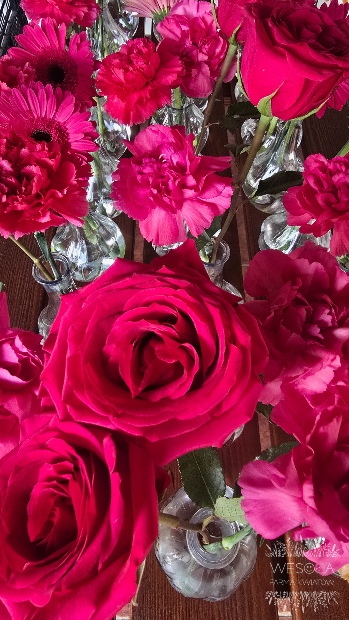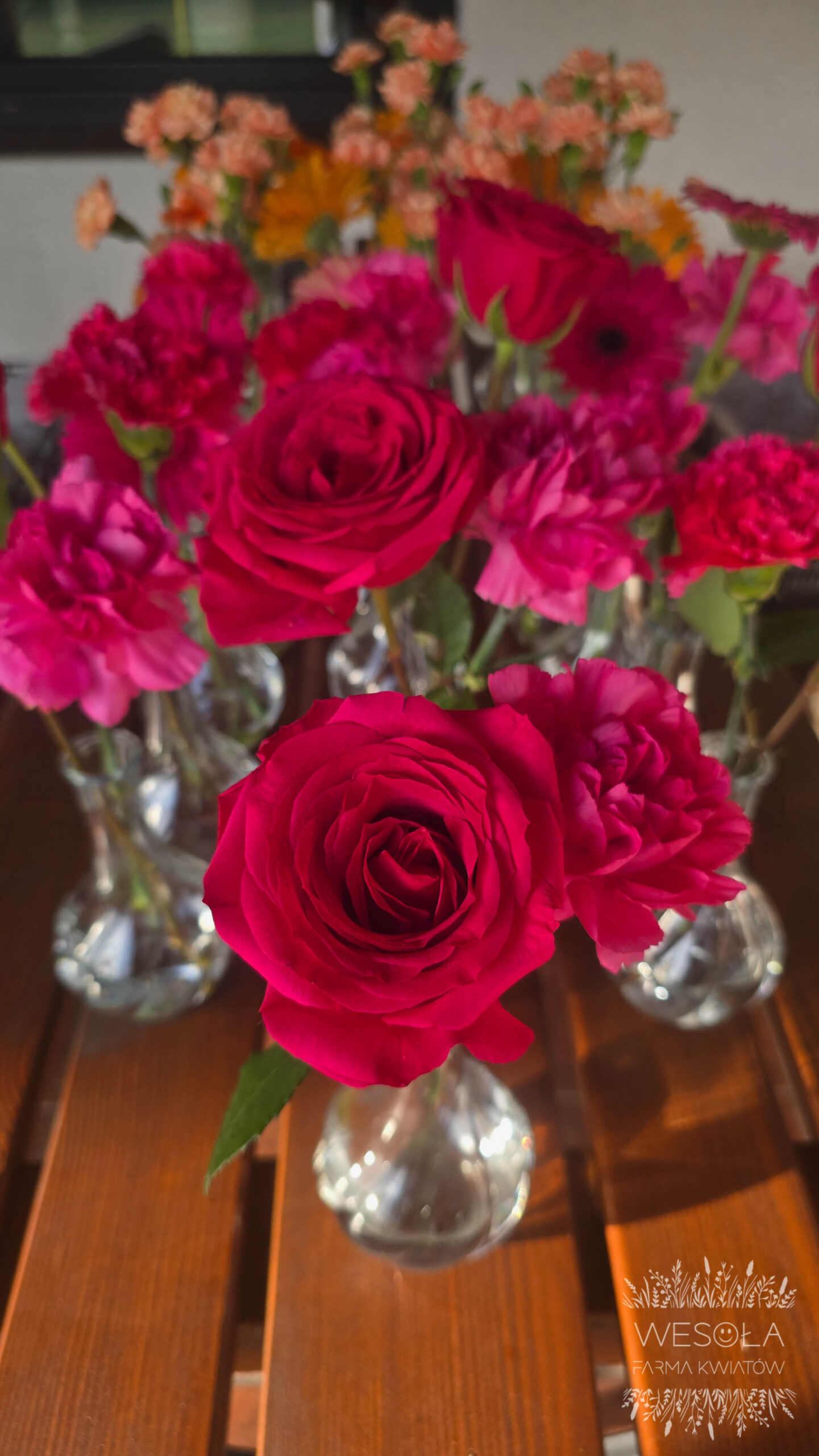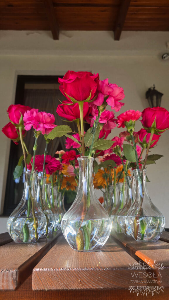 - małe bukiety w wazonikach,