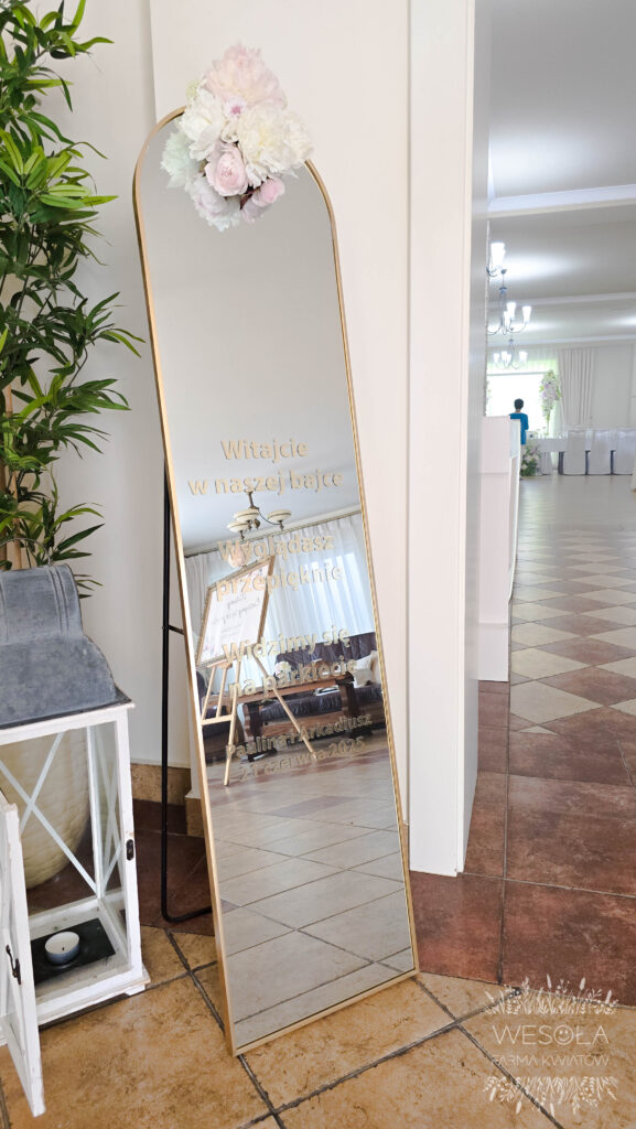 - spersonalizowane lustro z napisami udekorowane kwiatami.